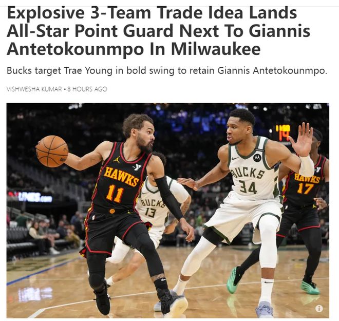 重量级三方交易方案诞生!特雷杨空降联手字母哥,利拉德送至奇才